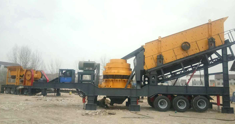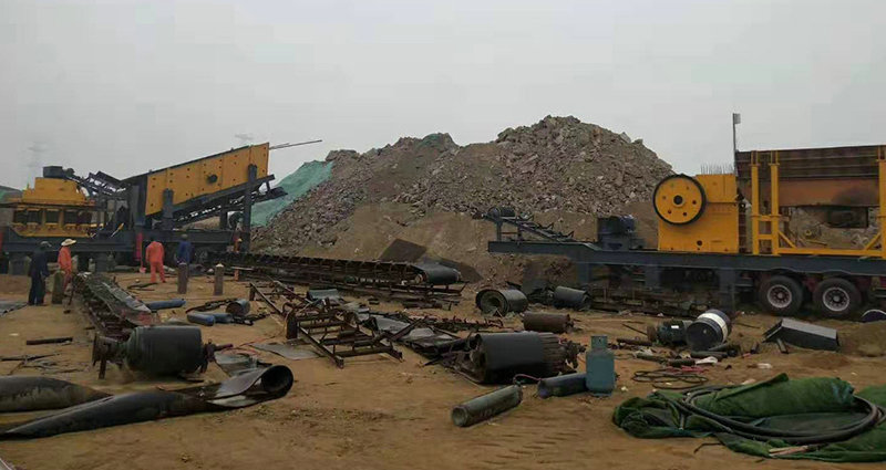 移動(dòng)式破碎站主破碎設(shè)備為破碎機(jī),物料經(jīng)給料機(jī)均勻輸送到破碎機(jī)內(nèi),被破碎機(jī)初步破碎以后由圓振動(dòng)篩構(gòu)成閉路系統(tǒng),實(shí)現(xiàn)物料的循環(huán)破碎,符合粒度要求的物料由輸送機(jī)輸出,從而達(dá)到生產(chǎn)目的。移動(dòng)式破碎站還可以根據(jù)實(shí)際生產(chǎn)需要去除圓振動(dòng)篩,而直接對物料進(jìn)行初步破碎,然后配合其他破碎設(shè)備進(jìn)行具體的操作,方便、靈活。